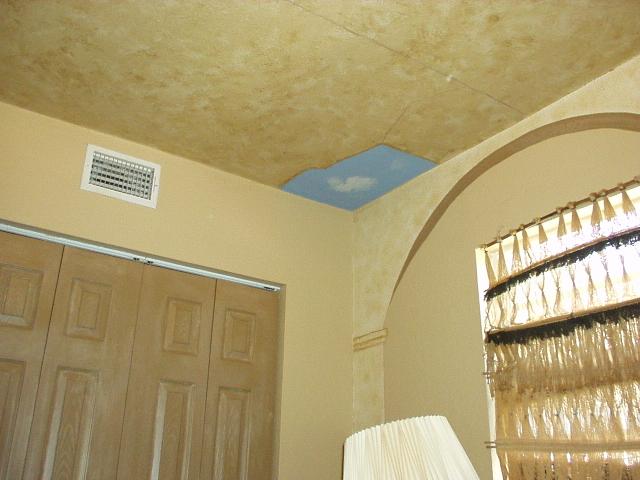 Here is a closer view of the hole in the ceiling above Jerry's north window. The doors started out life as ordinary closet doors.