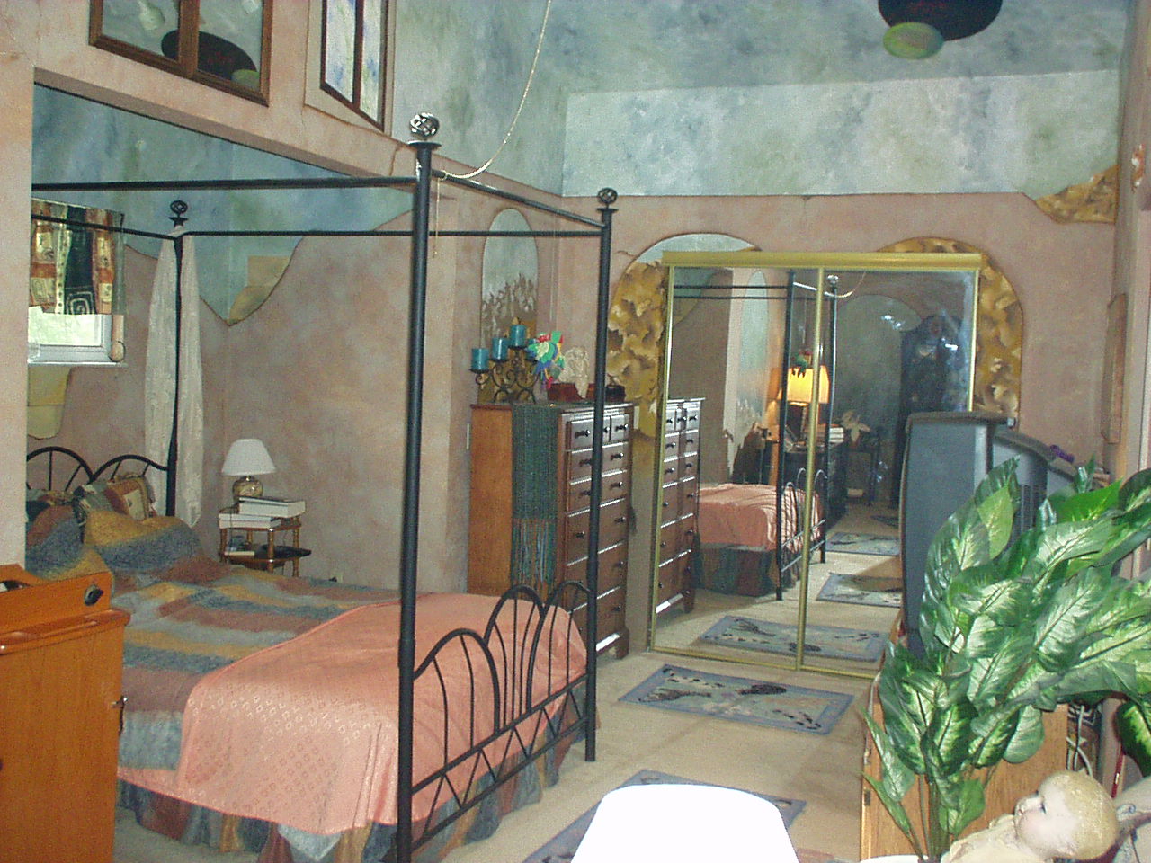 Here is the master bedroom from the south end of the room. A longer lens makes the room look shorter than it really is, but you can see a little more from the reflection in the mirror.